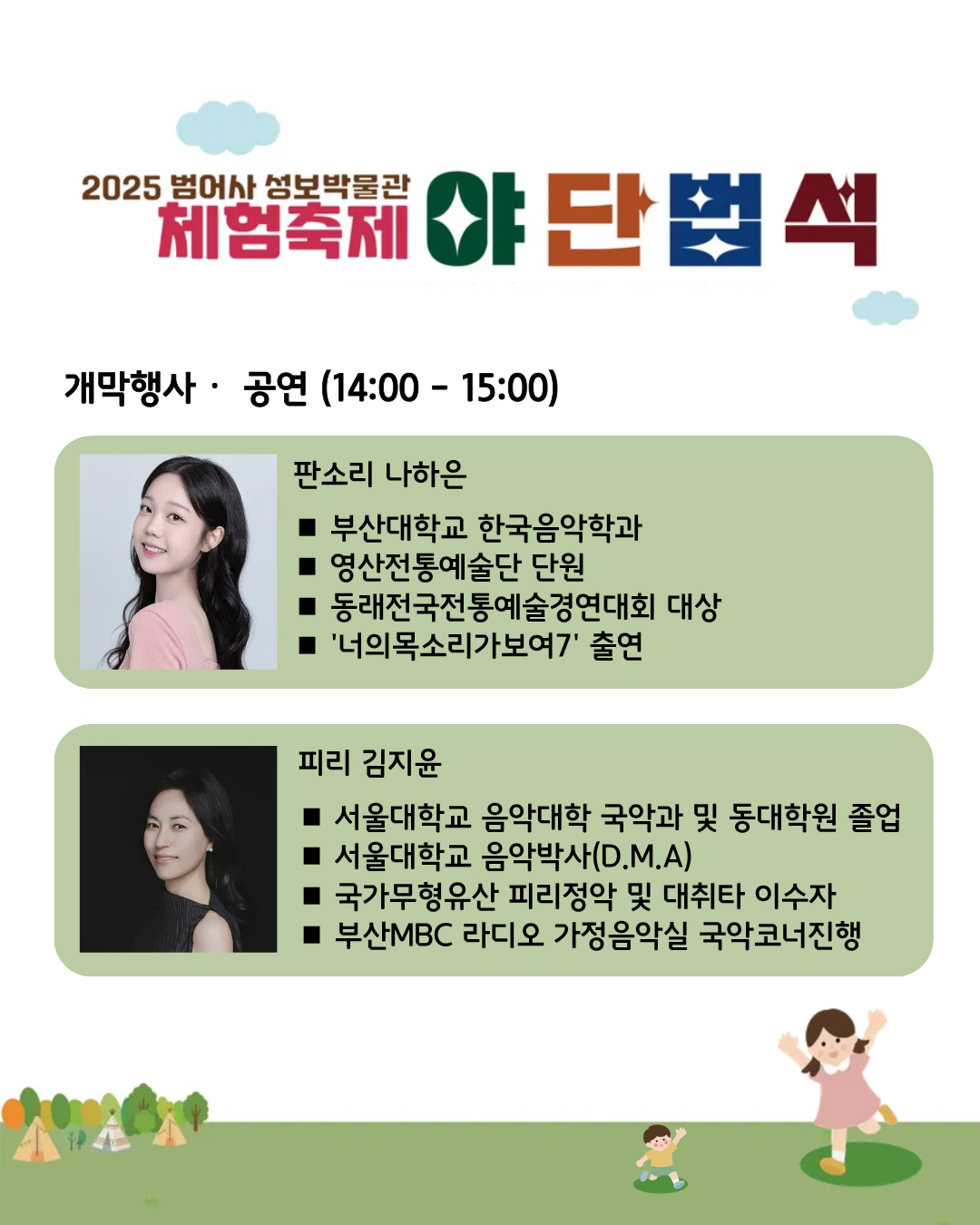 - 출 연 진 : 판소리 나하은, 피리 김지은